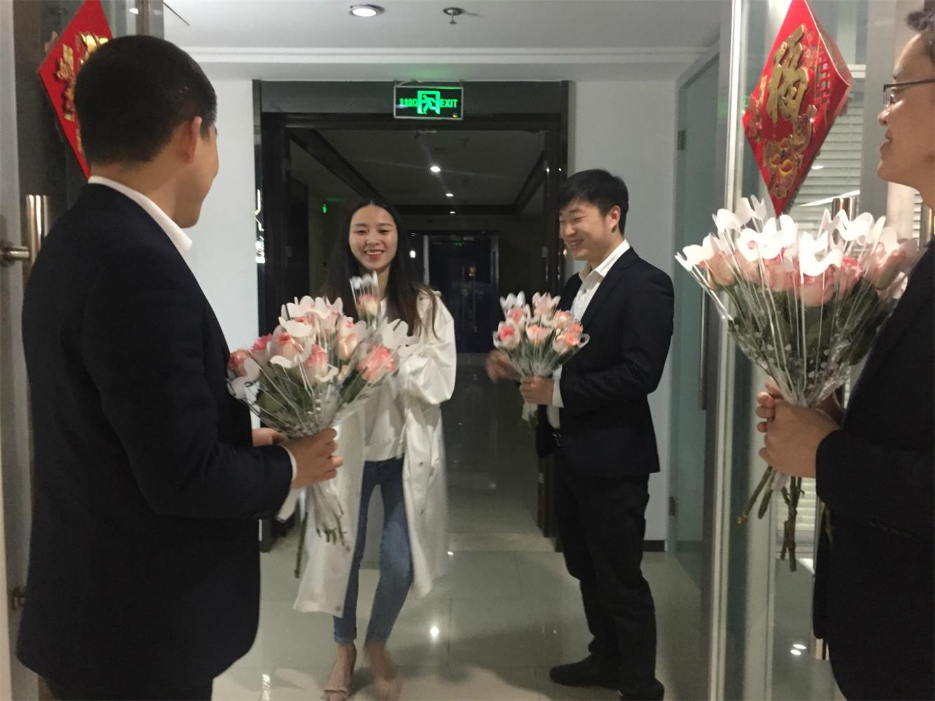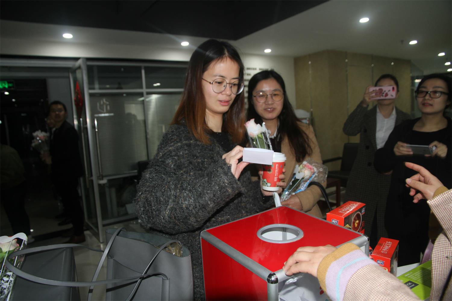 男同事們的“花樣”祝福與現(xiàn)場的抽獎(jiǎng)安排將本次活動(dòng)的氛圍推向了高潮。在辦公區(qū)門口,陸續(xù)到達(dá)的女員工們第一時(shí)間就收到了節(jié)日的鮮花與祝福,并參與了集團(tuán)的抽獎(jiǎng)活動(dòng),8名幸運(yùn)兒將公司提供的精美禮品收入囊中,收獲了“健康、甜蜜、美麗”的節(jié)日祝愿,歡快、熱烈的氣氛在現(xiàn)場蔓延。
