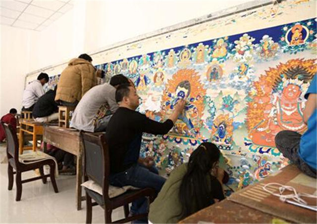做為“三江之源”的青海省,也把久負盛名的熱貢藝術帶進了本屆文博會的展區,其中最為吸引眼球的莫過于精美的唐卡作品了。來自“藏族畫家之鄉”同仁縣的*********唐卡藝術大師楊吉加帶來了自己創作的多幅作品參加展示。