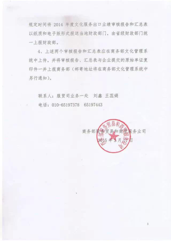 關(guān)于做好2015年度文化服務(wù)出口獎勵資金申報工作的通知