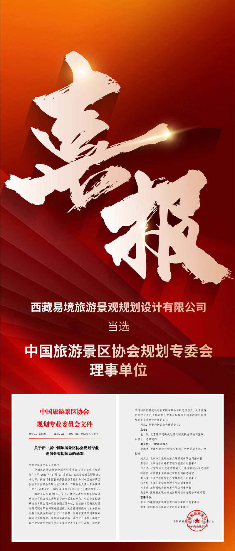 喜訊 | 西藏易境旅游景觀規(guī)劃設(shè)計有限公司當(dāng)選中國旅游景區(qū)協(xié)會規(guī)劃專委會理事單位